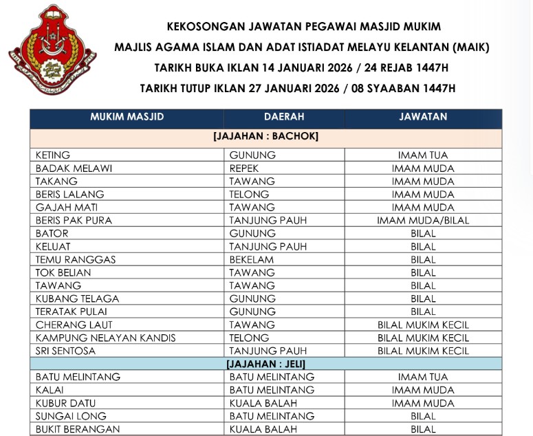 Iklan Kini Jawatan Kosong Majlis Agama Islam & Adat Istiadat Melayu Kelantan Klik Iklan Jawatan Disini