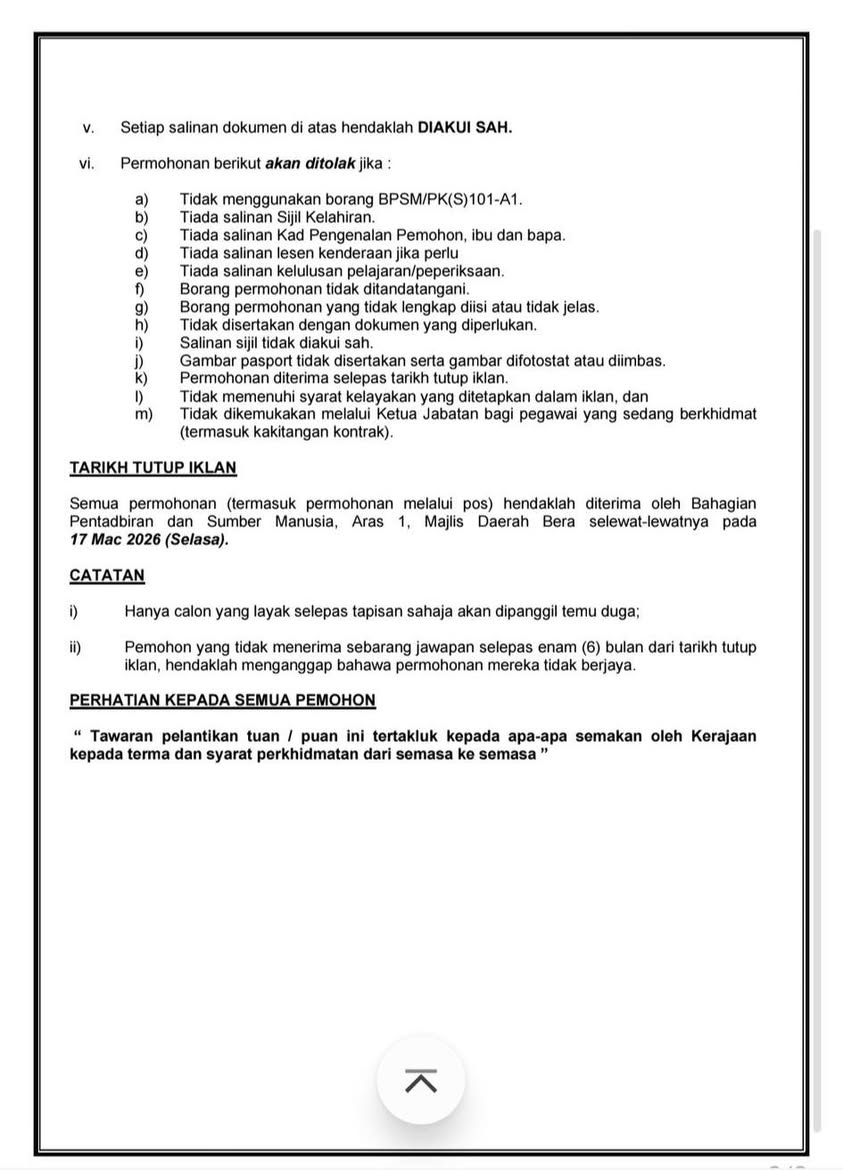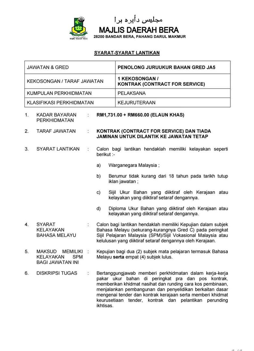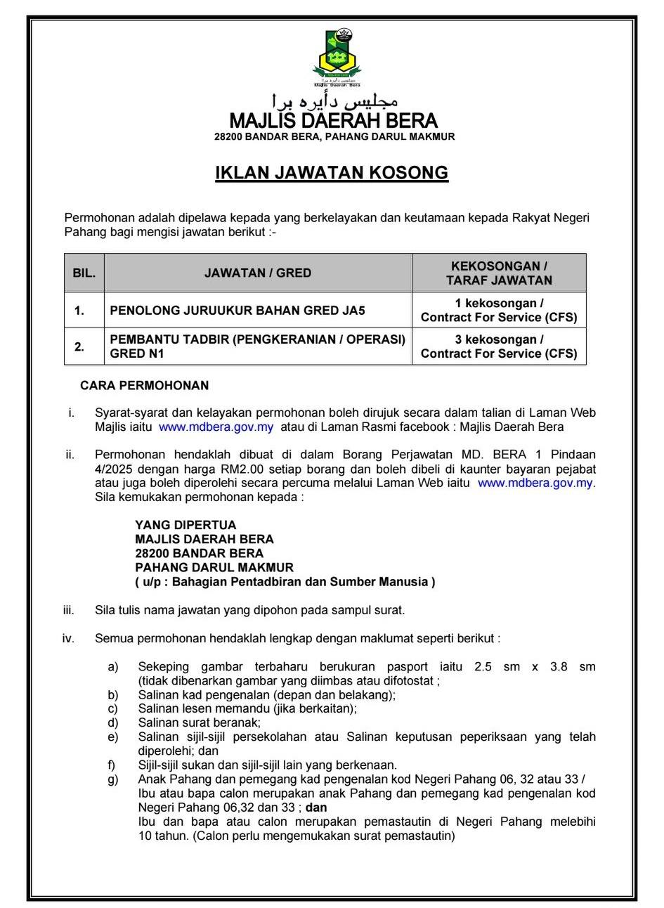 Iklan Kini Jawatan Kosong Majlis Daerah Bera