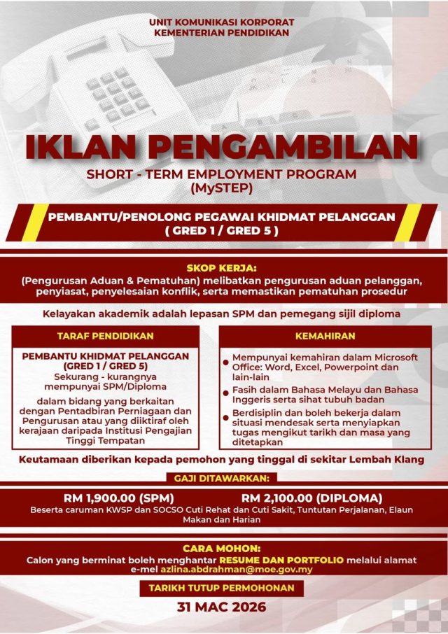 Iklan Kini Jawatan Kosong Personel Mystep Di KPM