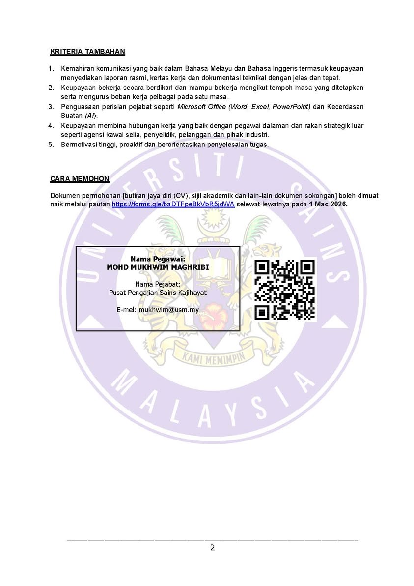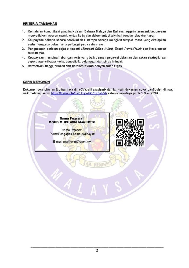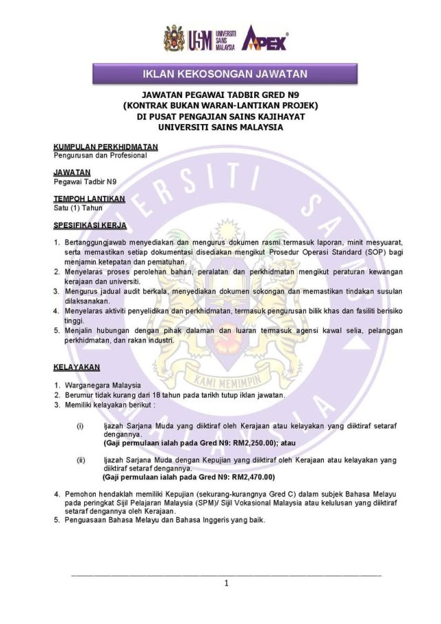 Iklan Kini Jawatan Kosong Universiti Sains Malaysia