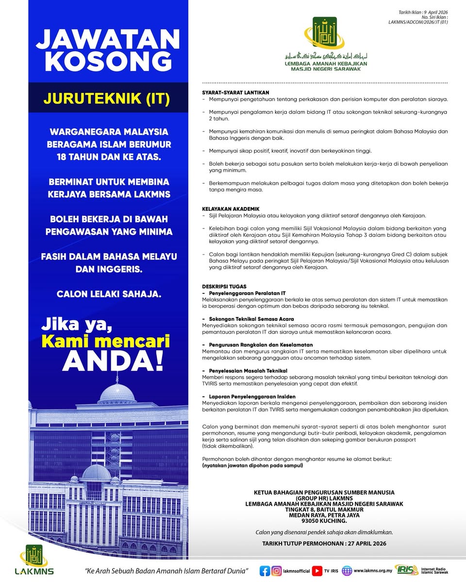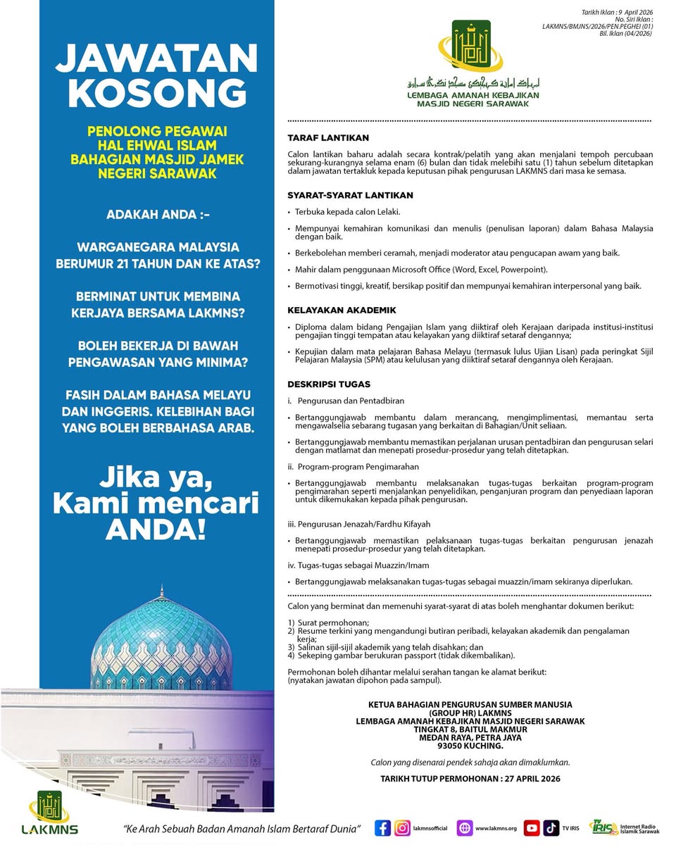 Portal Kerjaya / MANUAL / IKLAN KINI JAWATAN LEMBAGA AMANAH KEBAJIKAN MASJID NEGERI SARAWAK