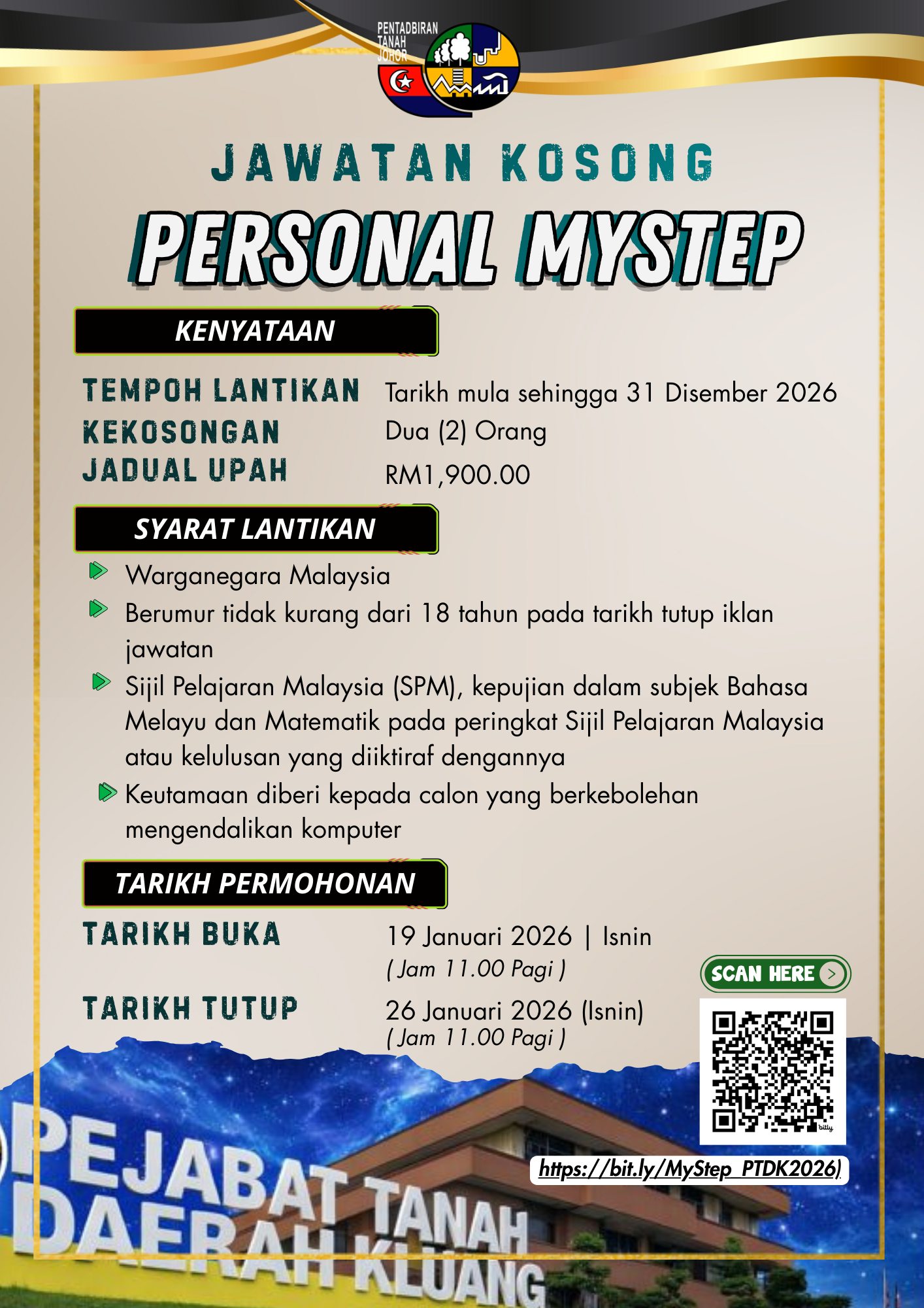 Iklan Kini Jawatan Pejabat Tanah Daerah Kluang
