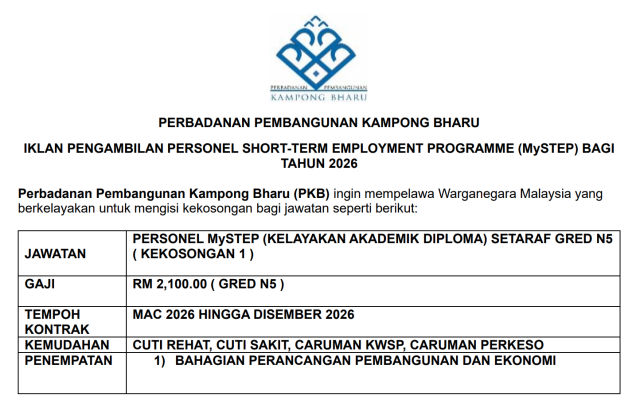 Iklan Kini Jawatan Perbadanan Pembangunan Kampong Bharu (PKB)