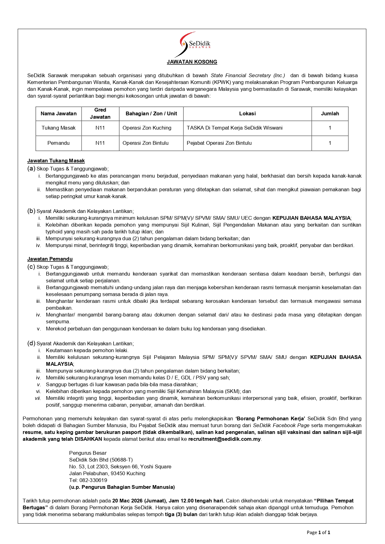 Iklan Kini Jawatan SeDidik Sarawak