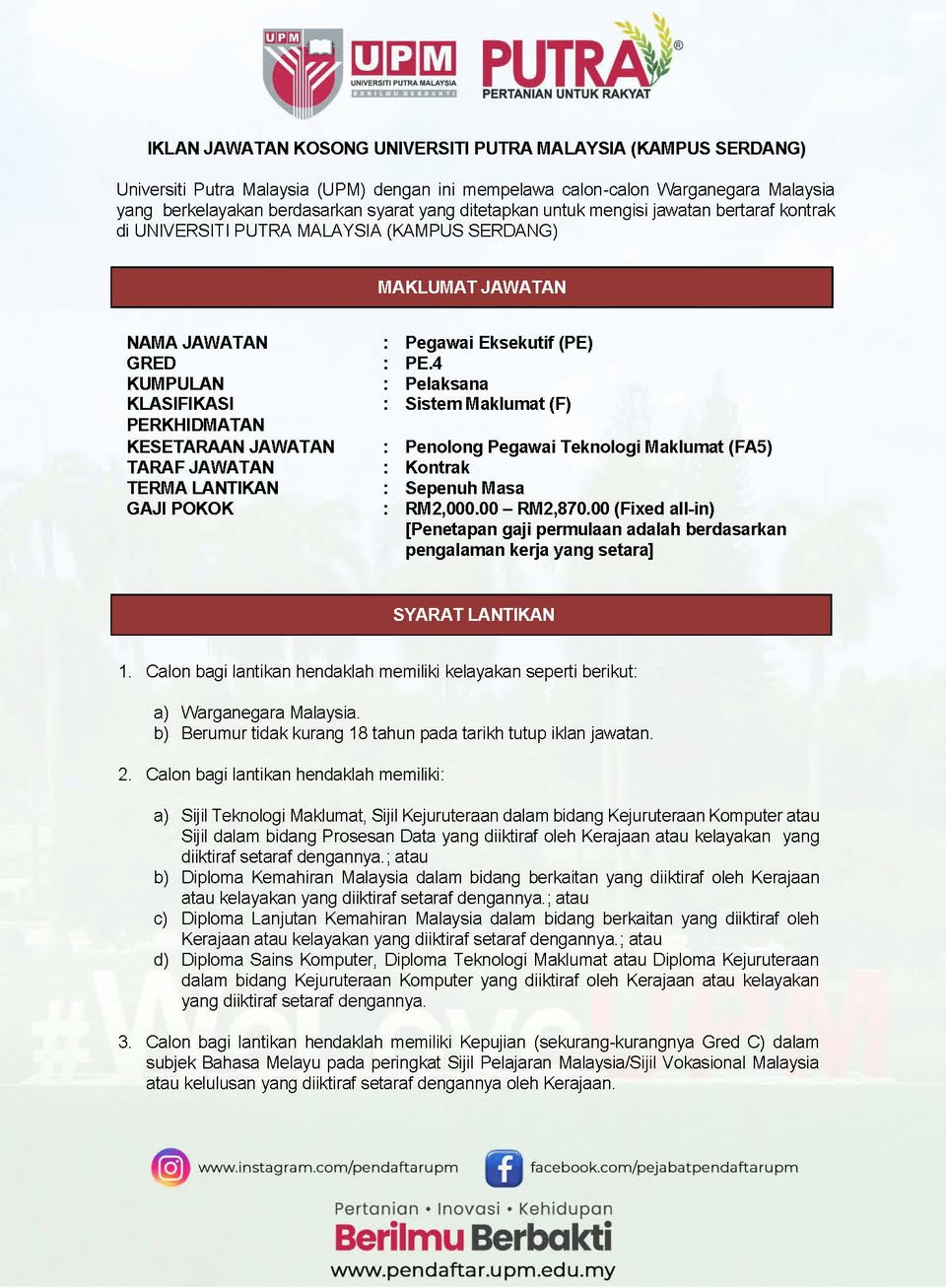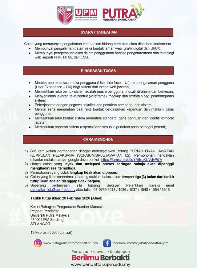 Iklan Kini Jawatan Universiti Putra Malaysia (UPM)