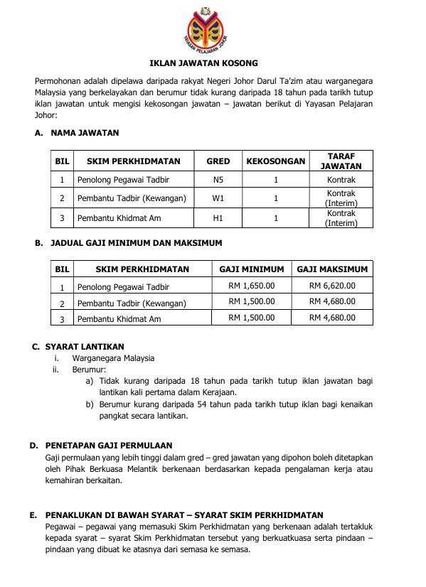 Iklan Kini Jawatan Yayasan Pelajaran Johor (YPJ)