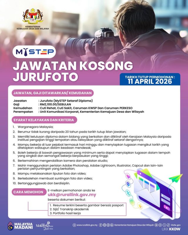 Iklan Kini Kementerian Kemajuan Desa & Wilayah ~ Jawatan Kosong Personel Mystep