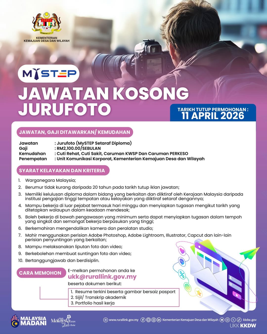 IKLAN KINI KEMENTERIAN KEMAJUAN DESA & WILAYAH ~ JAWATAN KOSONG PERSONEL