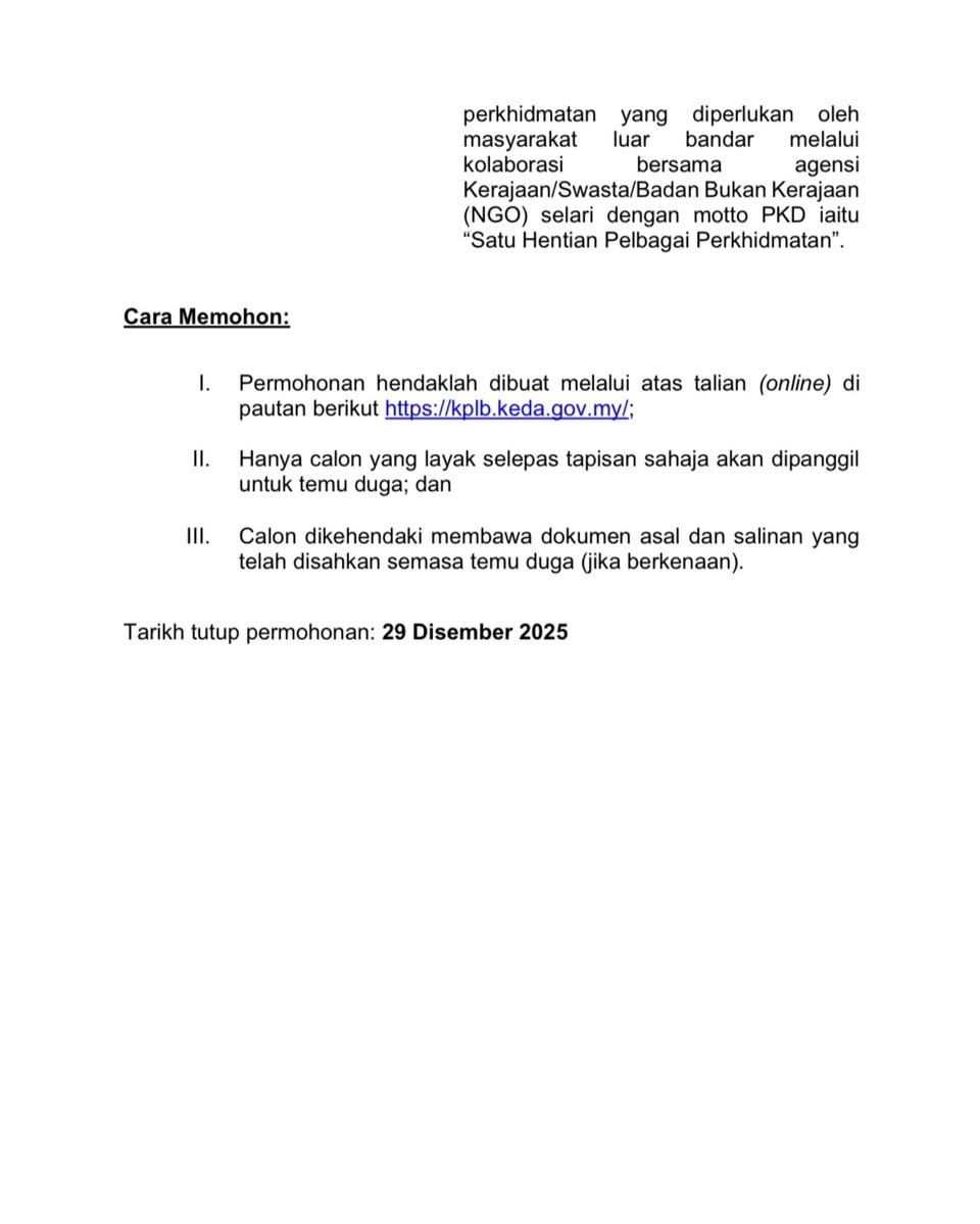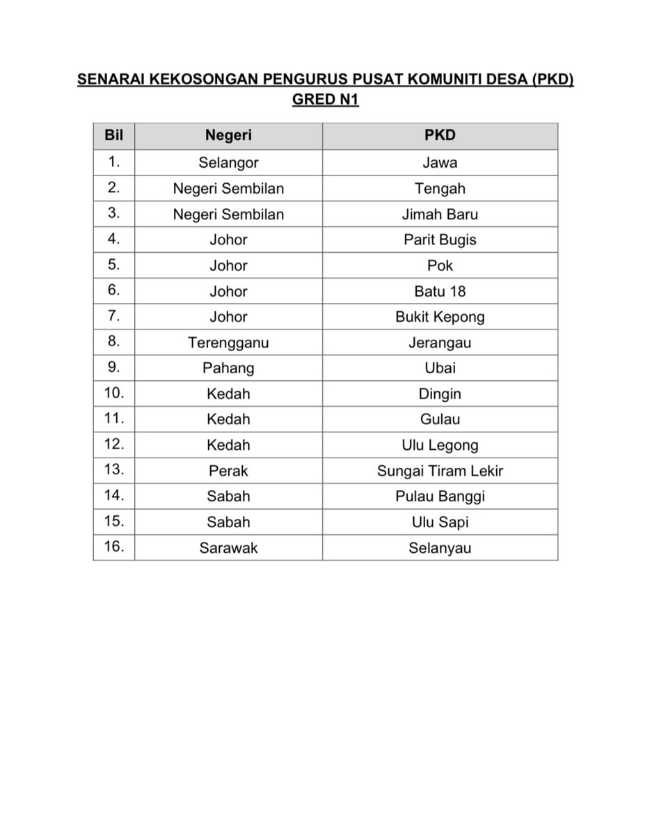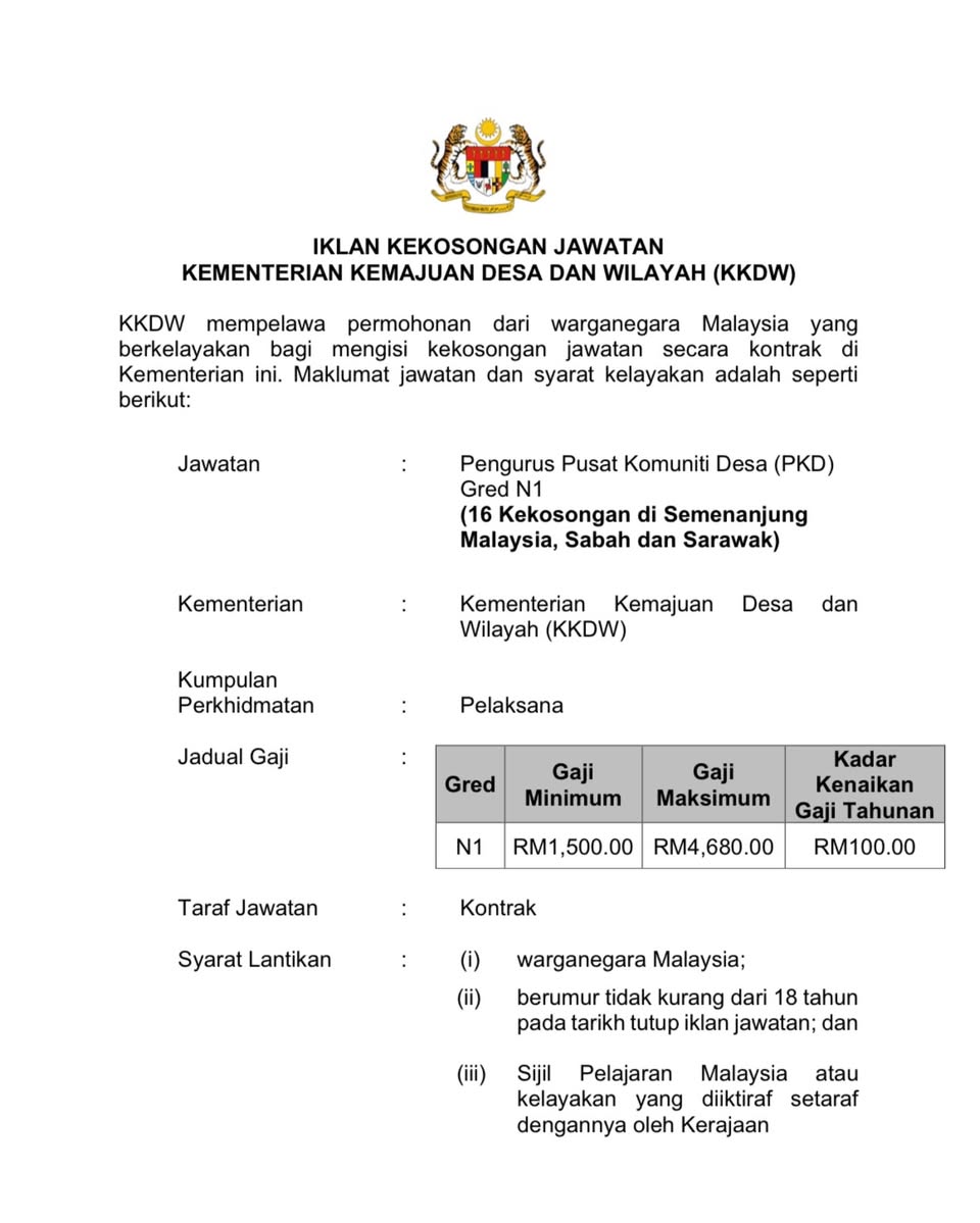 Iklan Kini Kementerian Kemajuan Desa & Wilayah (KKDW) ~ Kekosongan Jawatan Pengurus Pusat Komuniti Desa (PKD) Gred N1 Klik Iklan Jawatan
