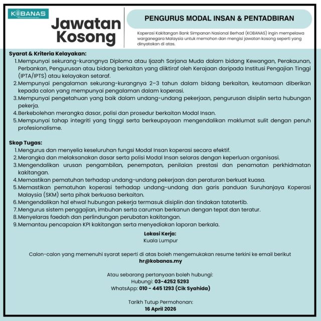 Iklan kini Koperasi Kakitangan Bank Simpanan Nasional (KOBANAS)