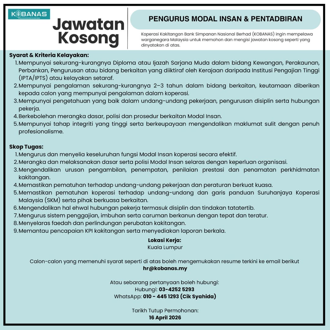 Portal Kerjaya / MANUAL / IKLAN KINI KOPERASI KAKITANGAN BANK SIMPANAN NASIONAL (KOBANAS)