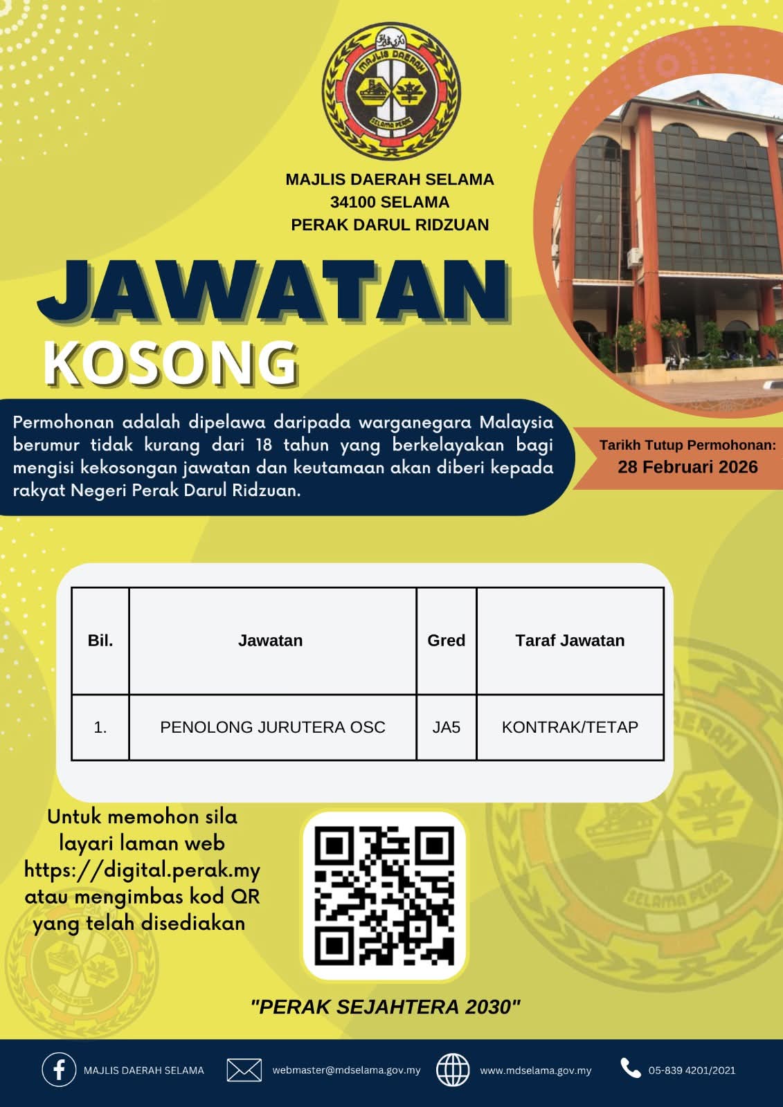 Iklan Kini Majlis Daerah Selama ~ Kekosongan Jawatan Penolong Jurutera OSC