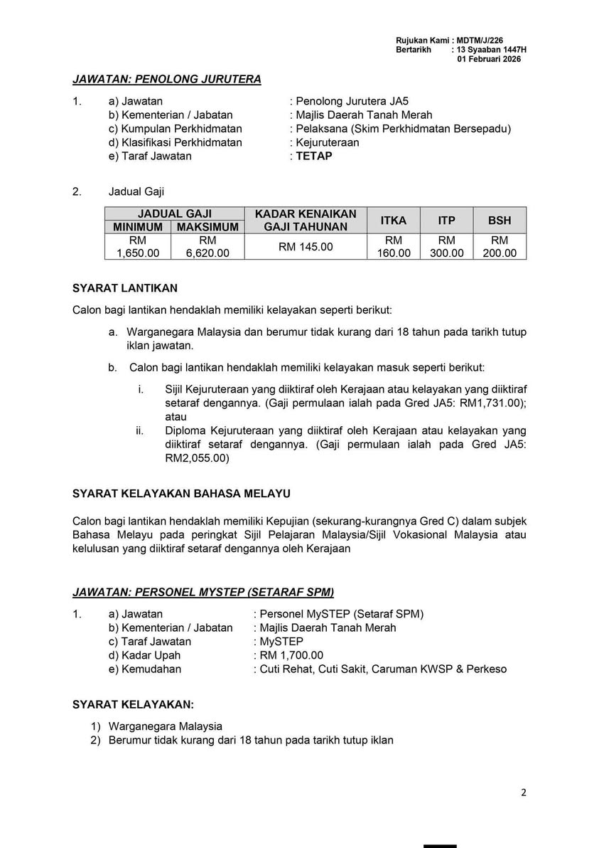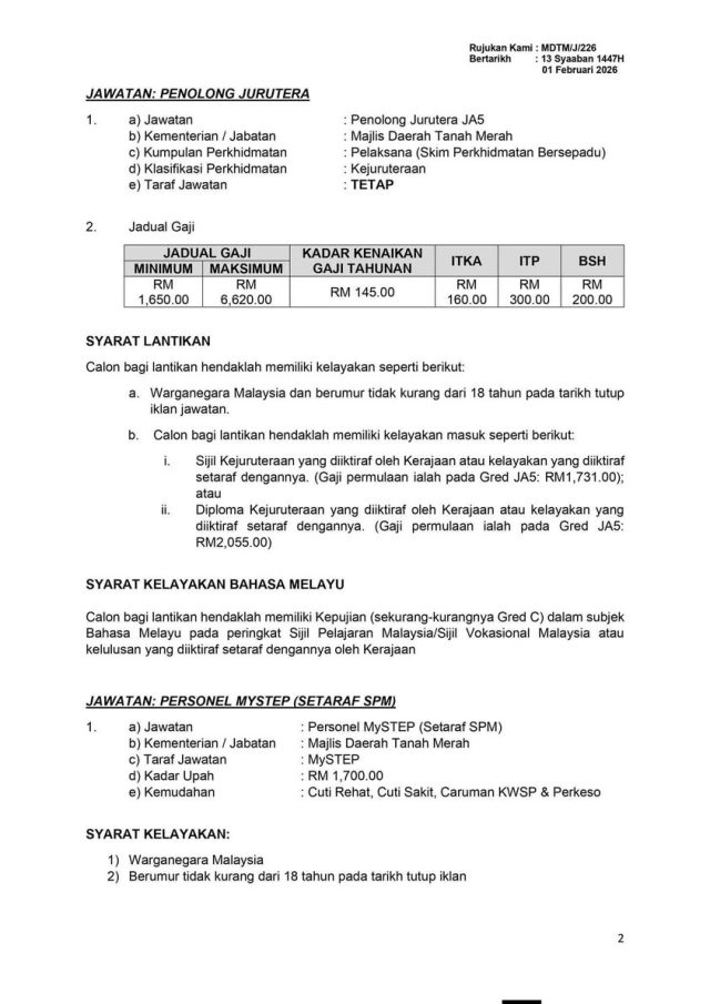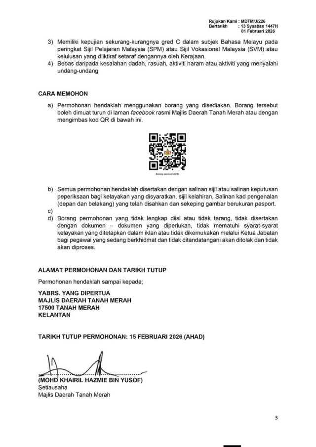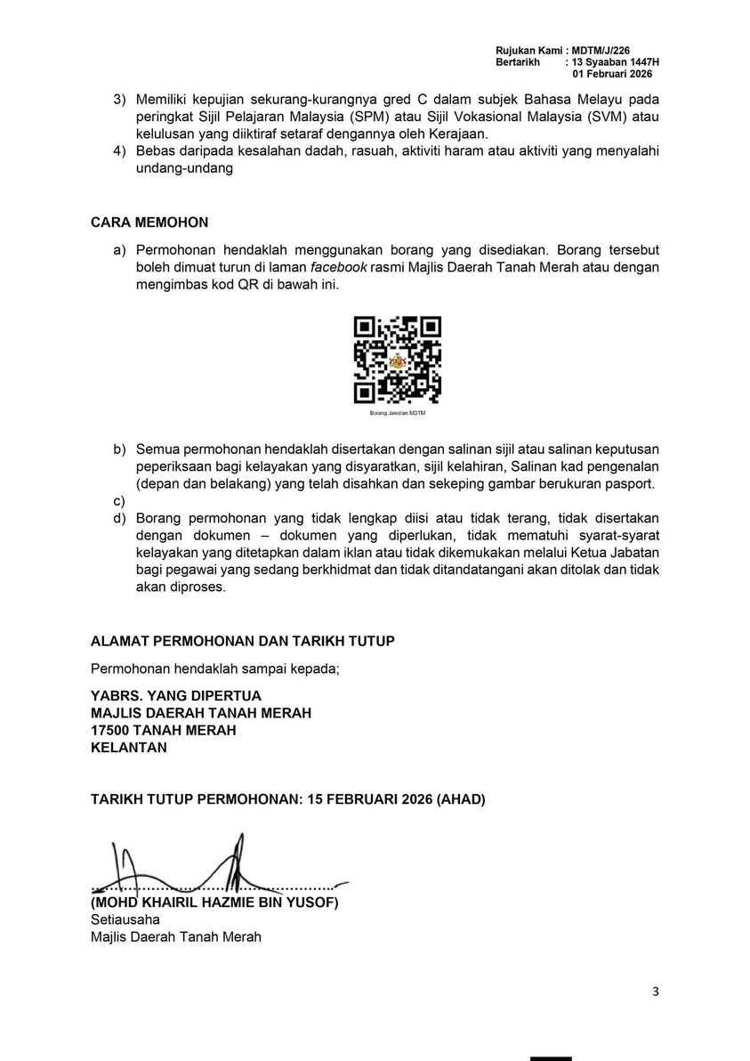Iklan Kini Majlis Daerah Tanah Merah (MDTM)