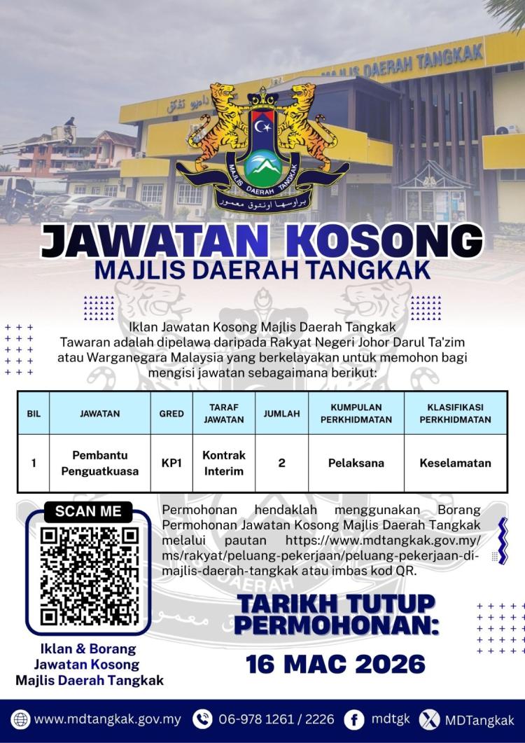 Iklan Kini Majlis Daerah Tangkak ~ Jawatan Kosong Pembantu Penguatkuasa