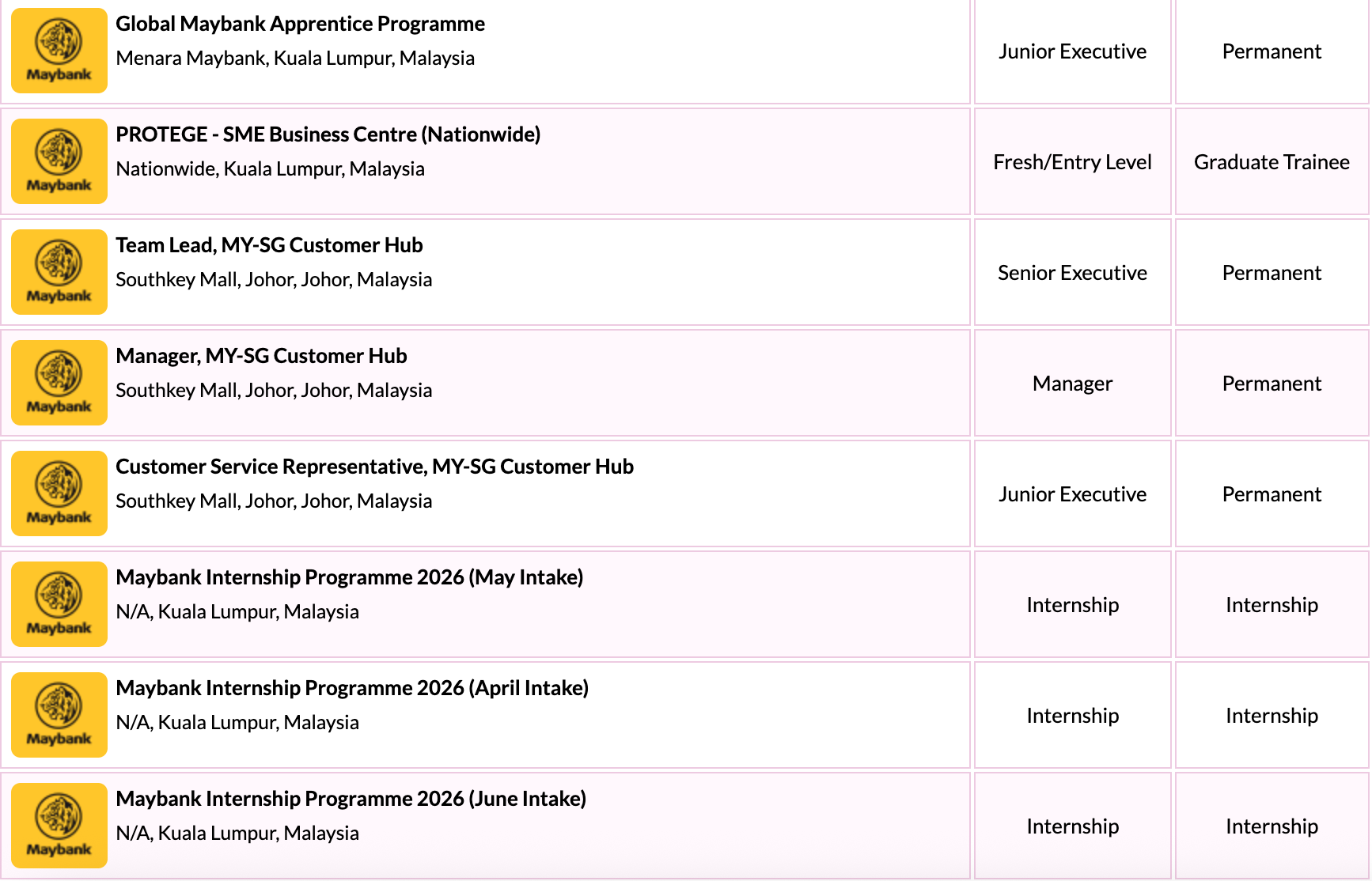 Iklan Kini Malayan Banking Berhad (Maybank) ~ Pelbagai Jawatan Kosong