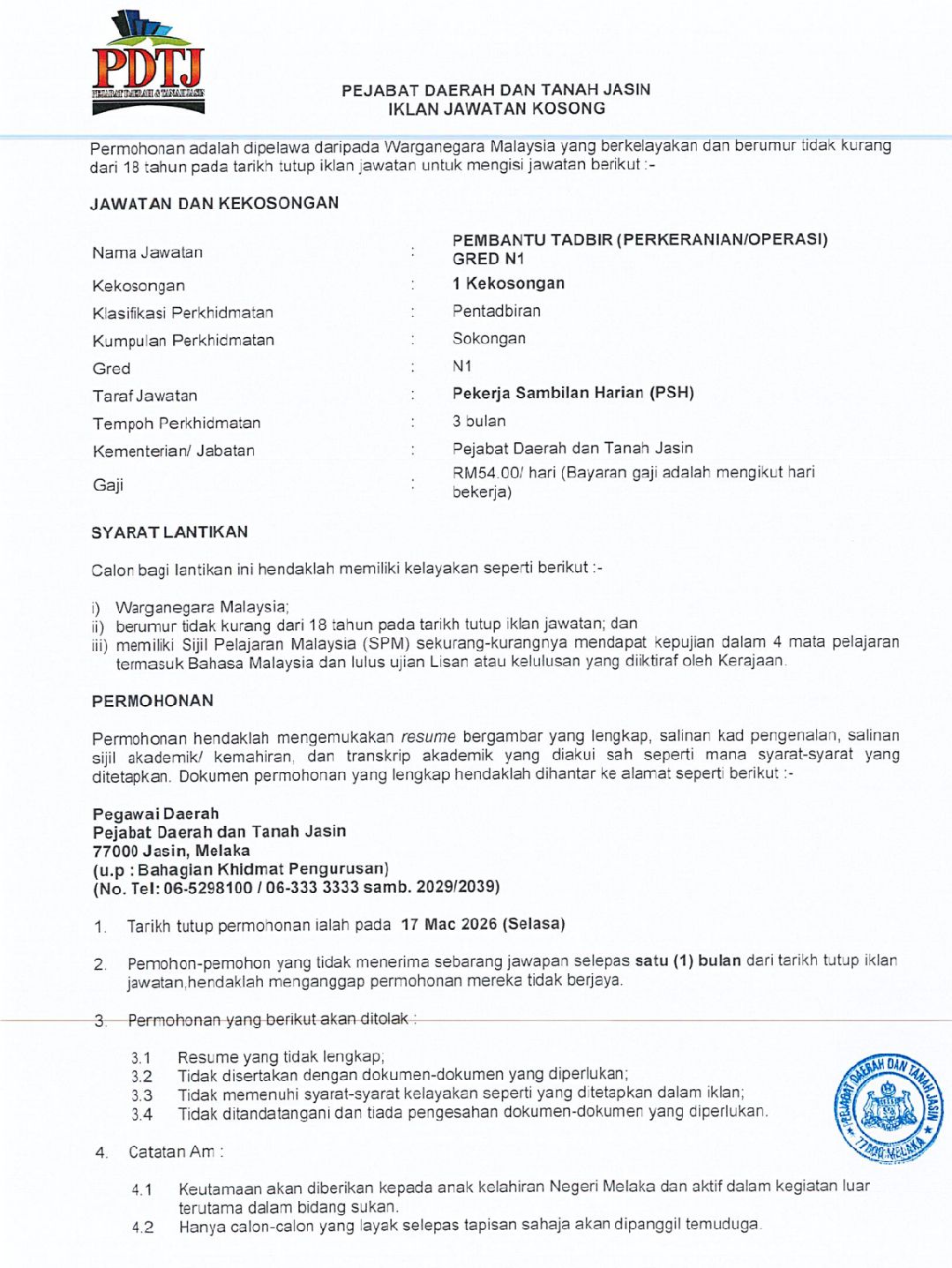 Iklan Kini Pejabat Daerah Dan Tanah Jasin