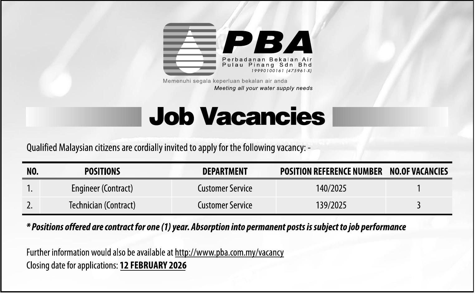 Iklan Kini Perbadanan Bekalan Air Pulau Pinang (PBA)