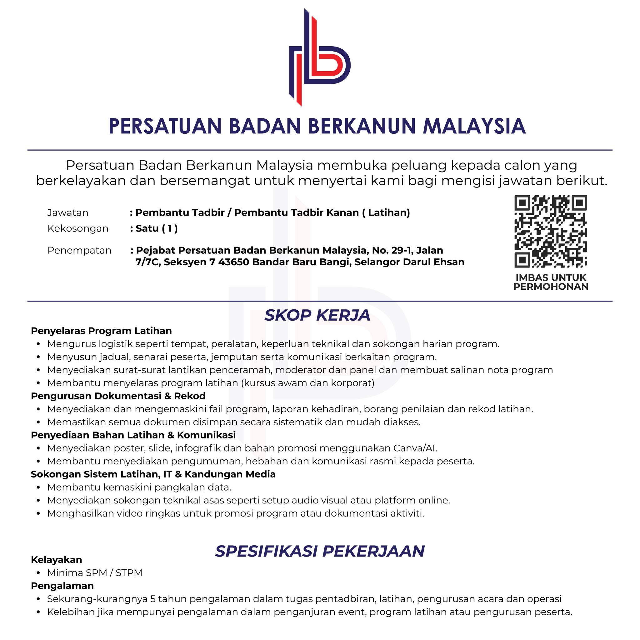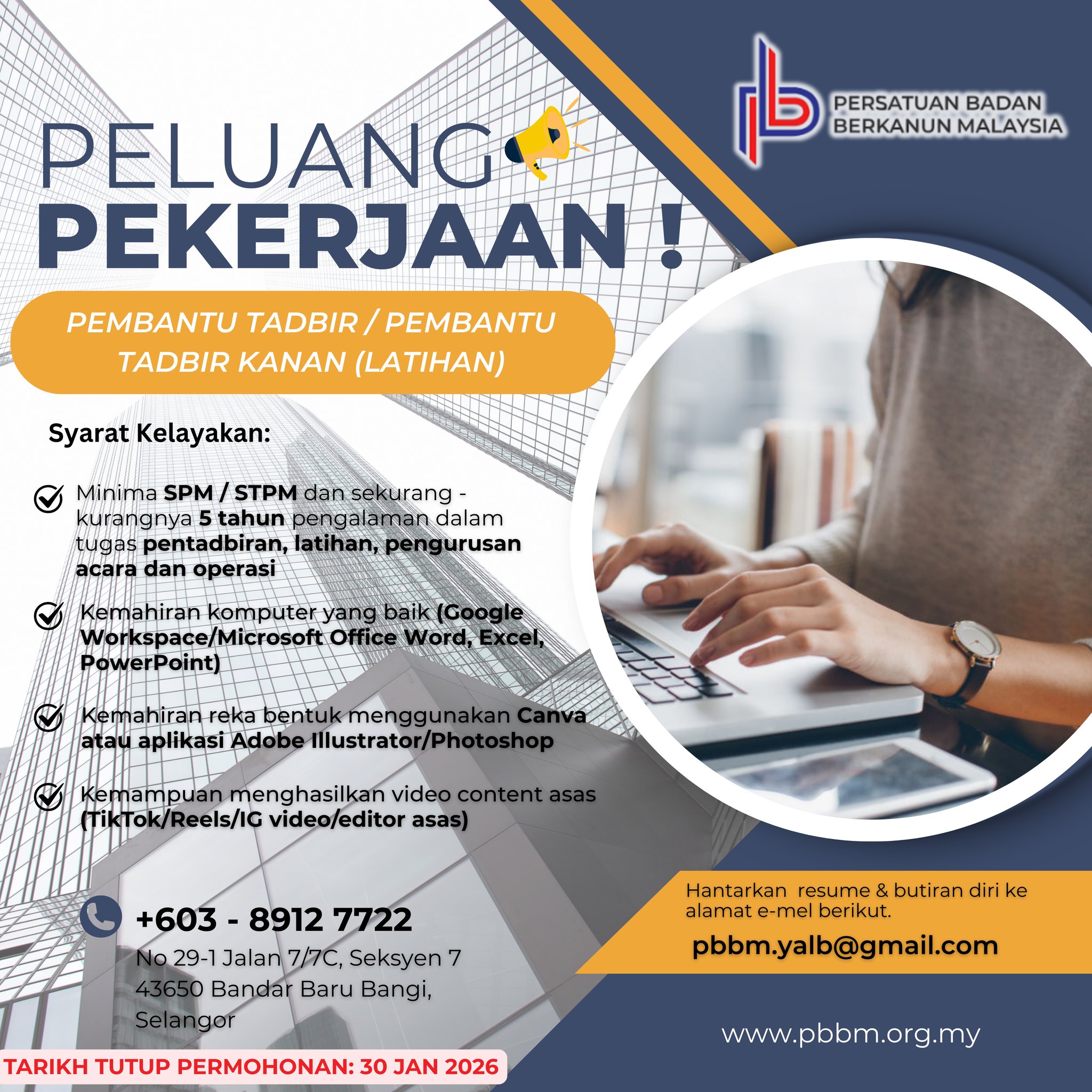 Iklan Kini Persatuan Badan Berkanun Malaysia (PBBM) ~ Jawatan Kosong Pembantu Tadbir / Pembantu Tadbir Kanan Klik Iklan Jawatan Disini