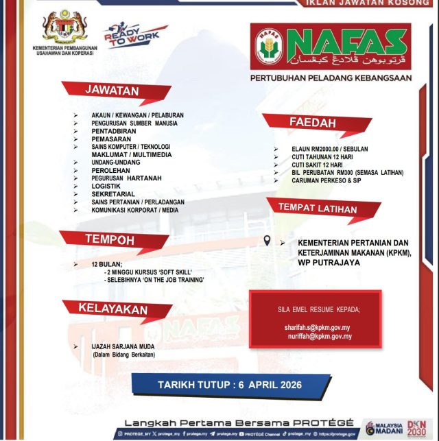 Iklan Kini Pertubuhan Peladang Kebangsaan (NAFAS) ~ Kekosongan Jawatan Protégé-Ready to Work (RTW) Klik Jawatan Disini