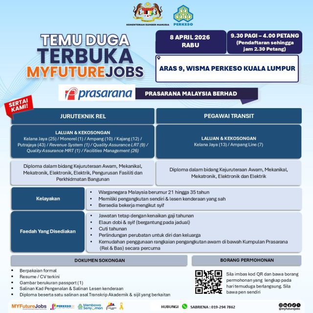 Iklan Kini Prasarana Malaysia Berhad ~ Temuduga Terbuka