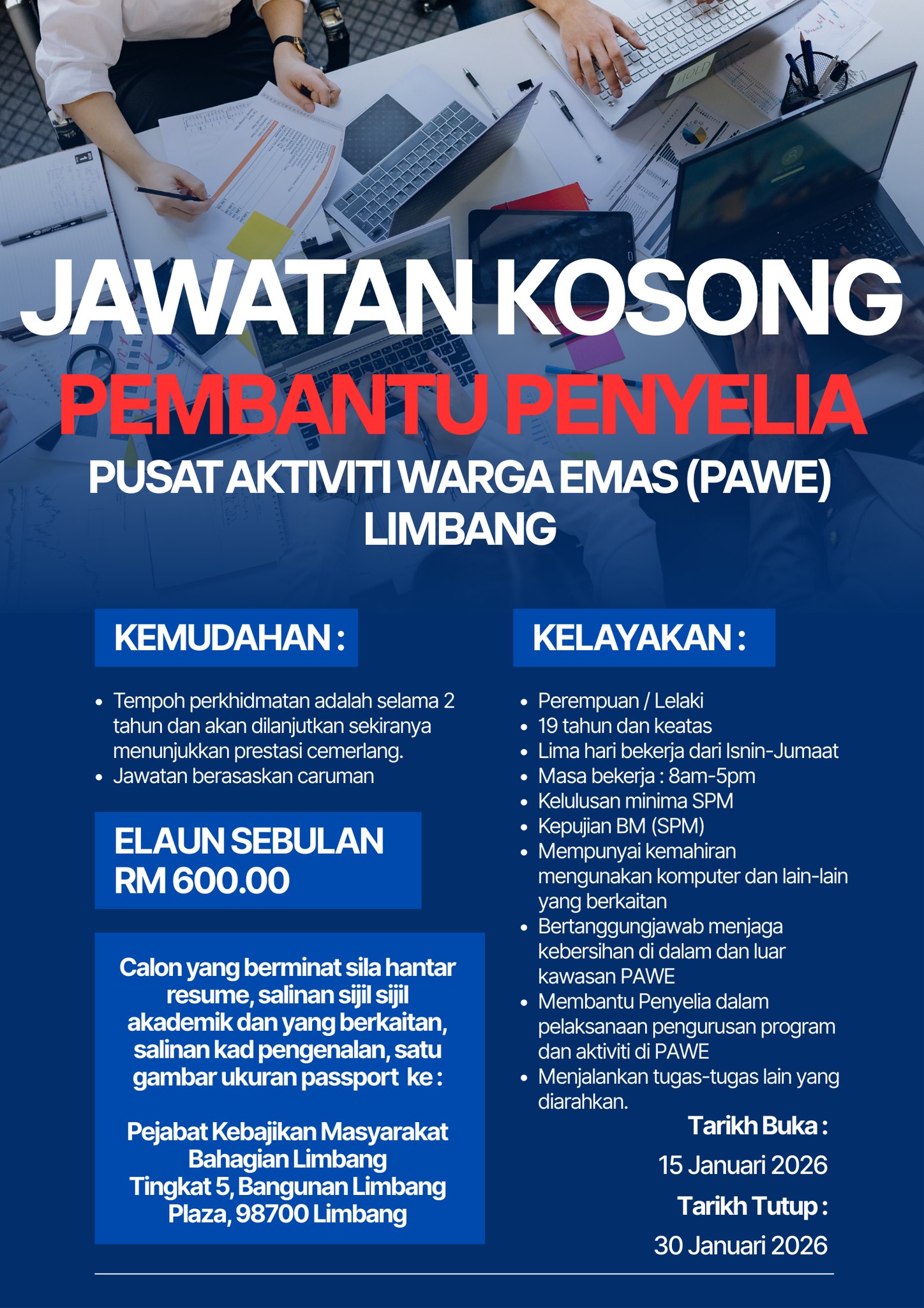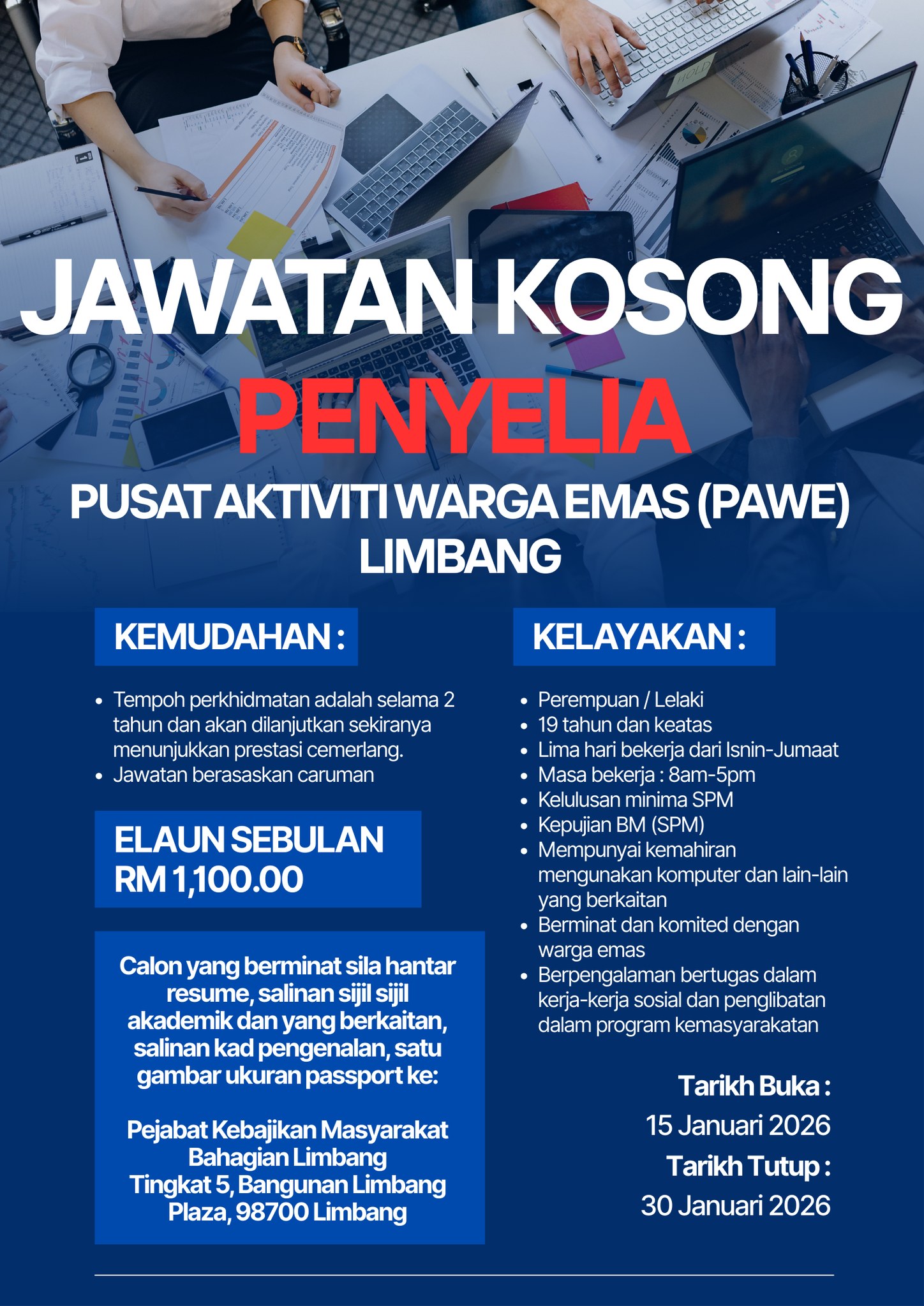 Iklan Kini Pusat Aktiviti Warga Emas (PAWE), Jabatan Kebajikan Masyarakat (JKM) ~ Kekosongan Jawatan Penyelia Dan Pembantu Penyelia Klik Iklan Jawatan Disini