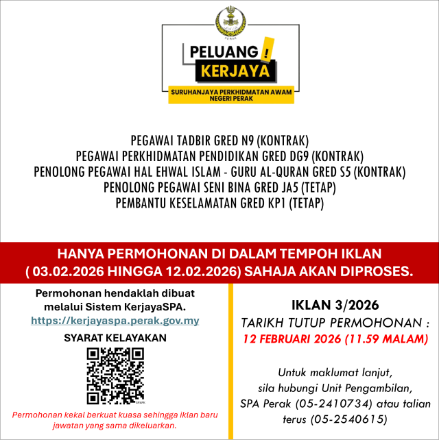 Iklan Kini Suruhanjaya Perkhidmatan Awam (SPA) Negeri Perak