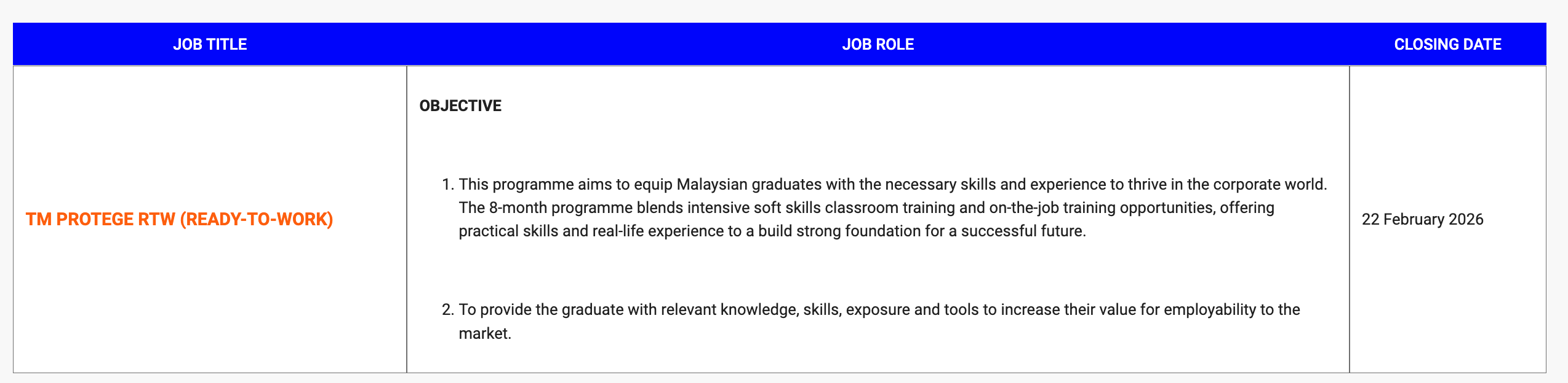Iklan Kini Telekom Malaysia ~ Kekosongan Jawatan TM Protege RTW (Ready-To-Work) Klik Iklan Jawatan Disini