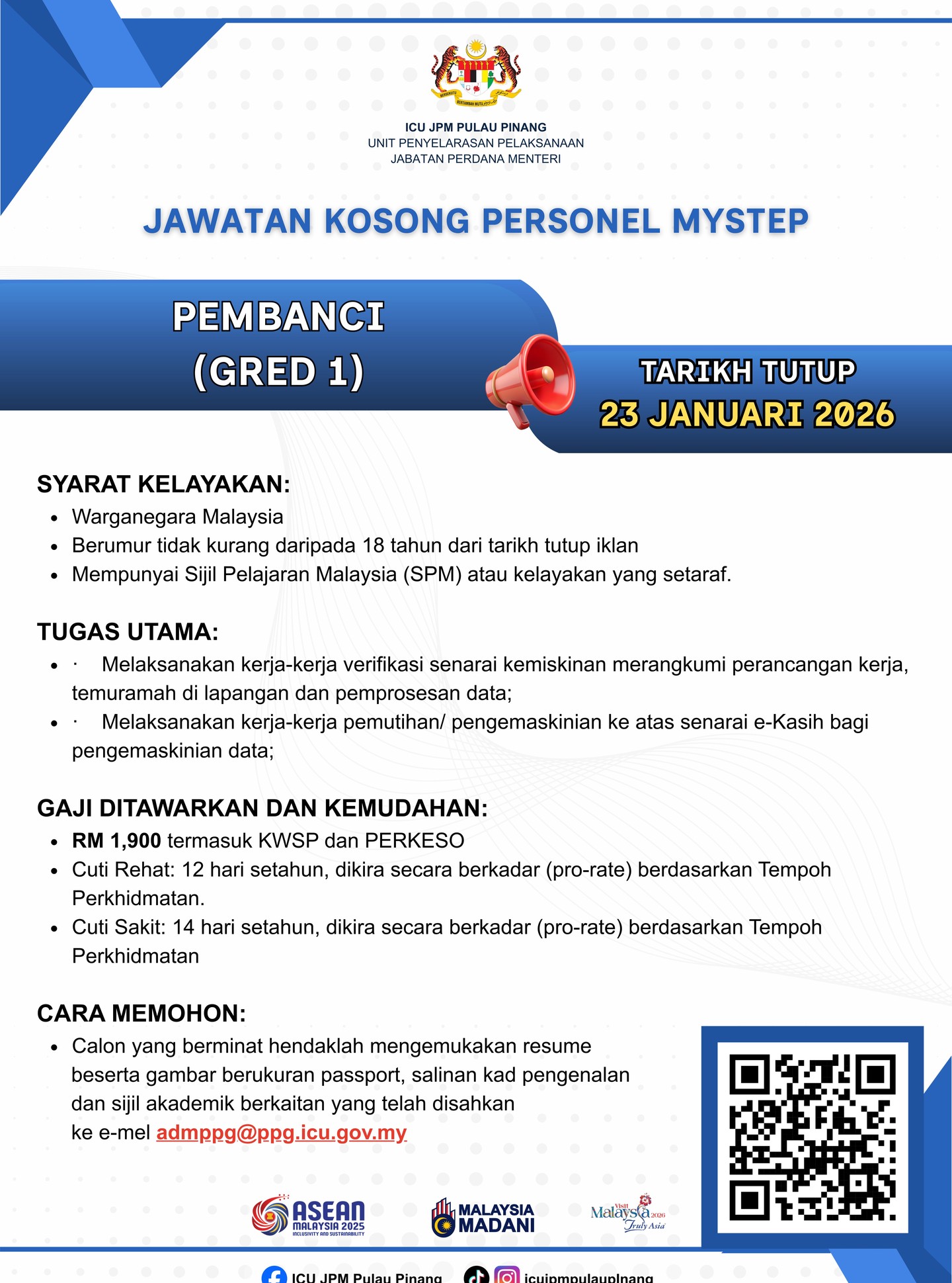 Iklan Kini Unit Penyelarasan Pelaksanaan Jabatan Perdana Menteri (ICU JPM) ~ Kekosongan Jawatan Personel MySTEP Klik Iklan Jawatan Disini