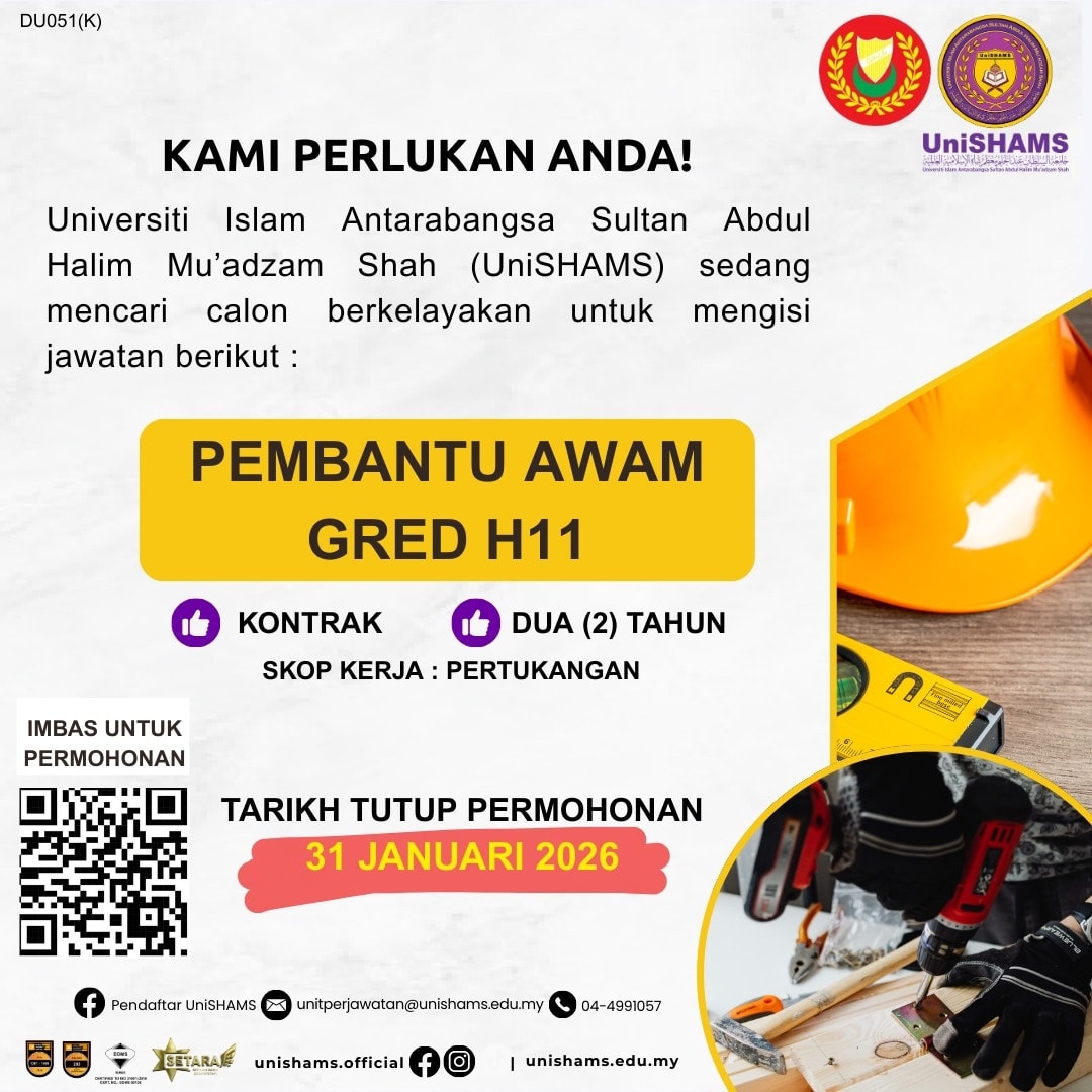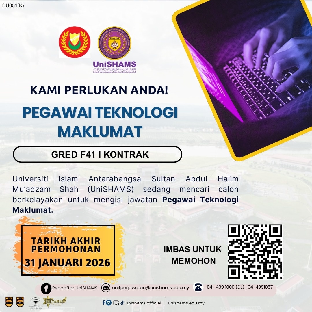 Iklan Kini Universiti Islam Antarabangsa Sultan Abdul Halim Mu’adzam Shah (UniSHAMS) Klik Iklan Jawatan Disini