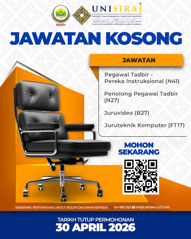 Iklan Kini Universiti Islam Antarabangsa Tuanku Syed Sirajuddin (UniSIRAJ) ~ Pelbagai Jawatan Kosong