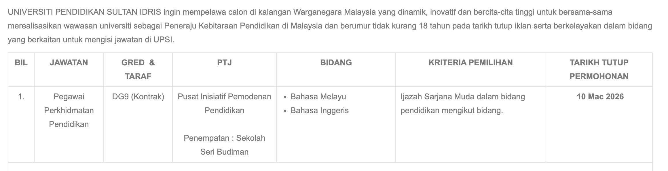Iklan Kini Universiti Pendidikan Sultan Idris (UPSI)