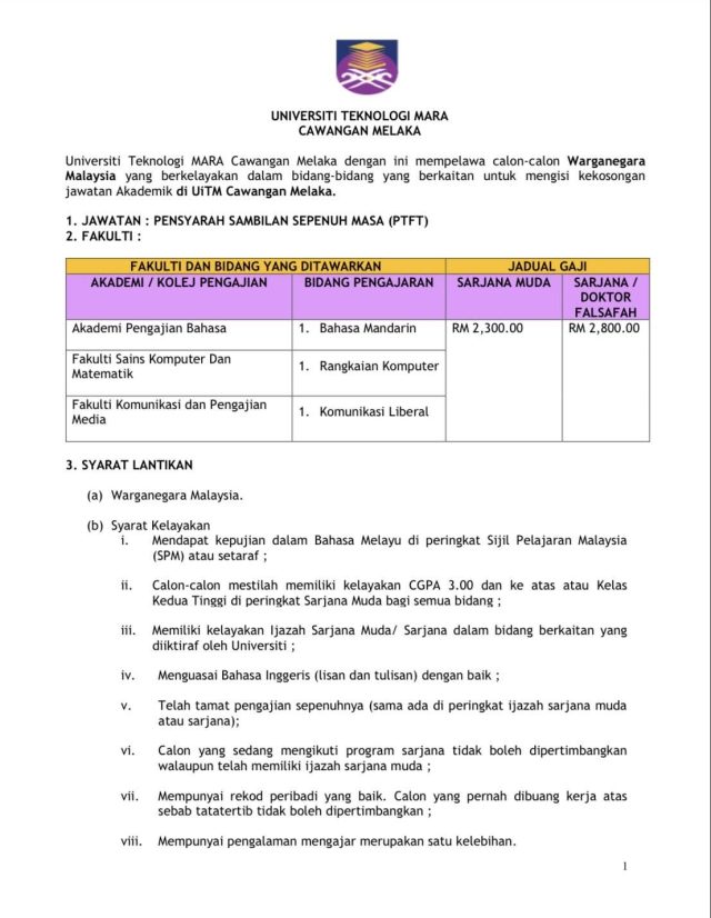 Iklan Kini Universiti Teknologi Mara (UiTM) Melaka