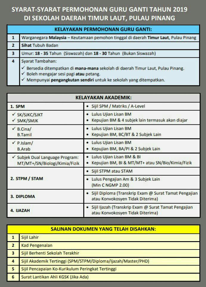 Untuk makluman, mana-mana calon yang berminat utk menjadi guru ganti boleh membuat permohonan melalui: