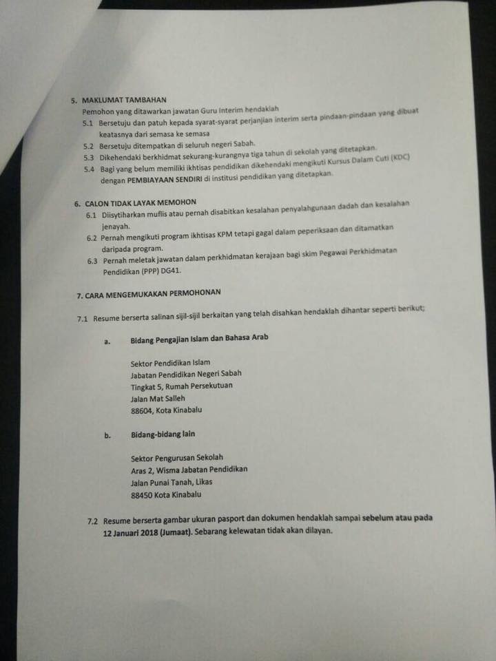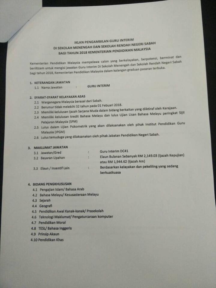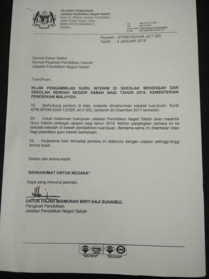 Iklan Guru Interim Sabah