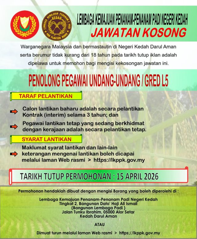 Iklan Terkini Lembaga Kemajuan Penanam-Penanam Padi Kedah