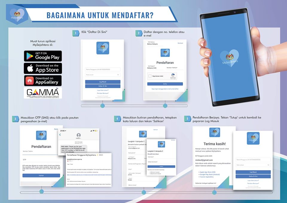 Bagi pengguna iOS atau Android, anda boleh terus applikasi MySejahtera melalui laman rasmi di bawah.