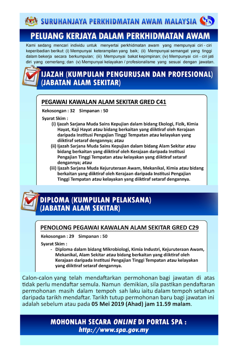 Permohonan Jawatan Kosong Jabatan Alam Sekitar.