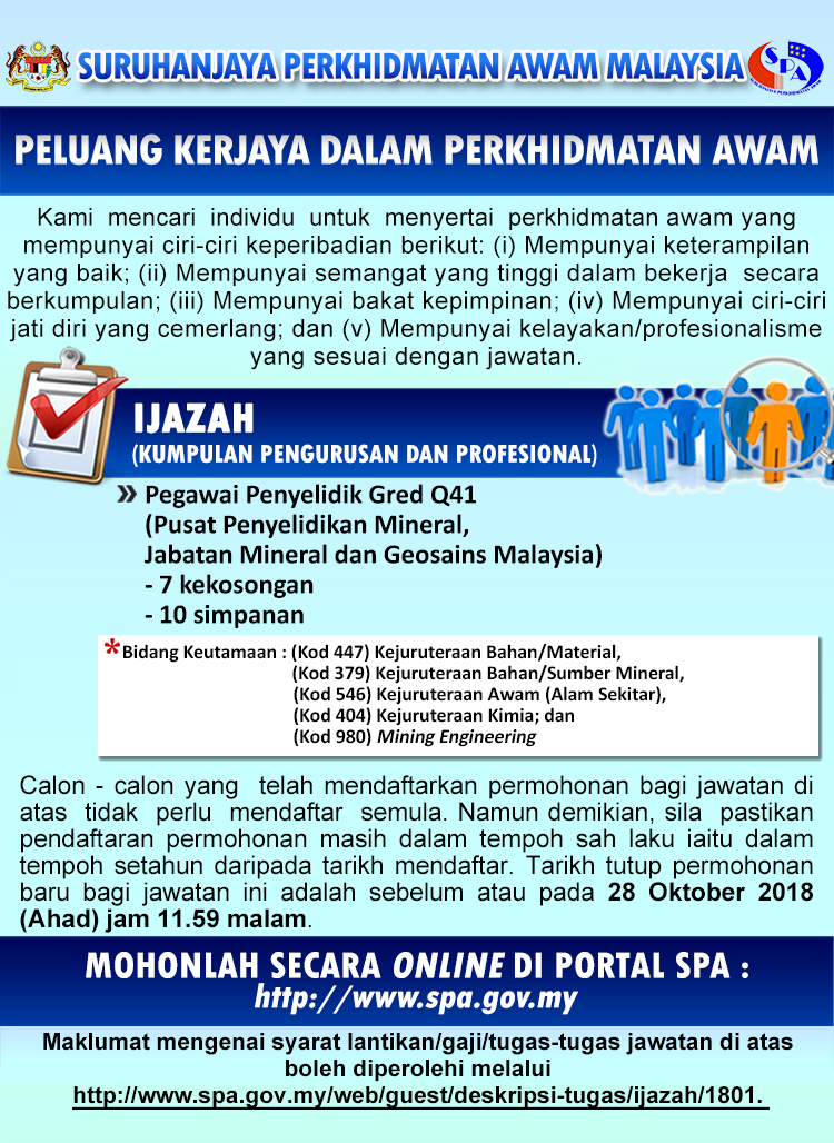 - Tarikh Tutup Permohonan: 28 Oktober 2018
