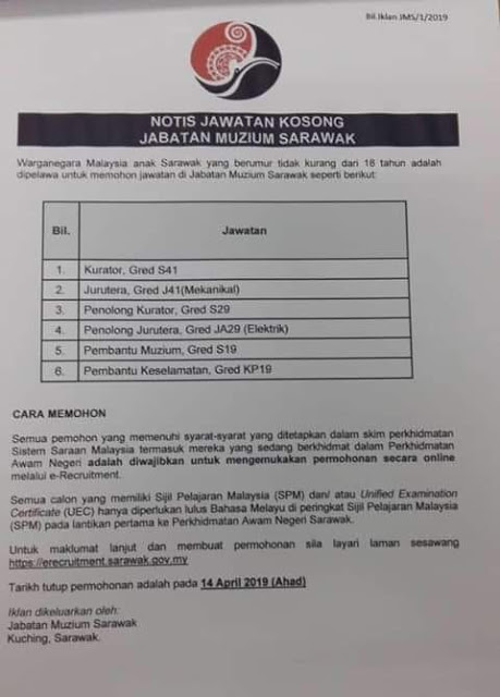 Jawatan Kosong Terkini Jabatan Muzium Sarawak.
