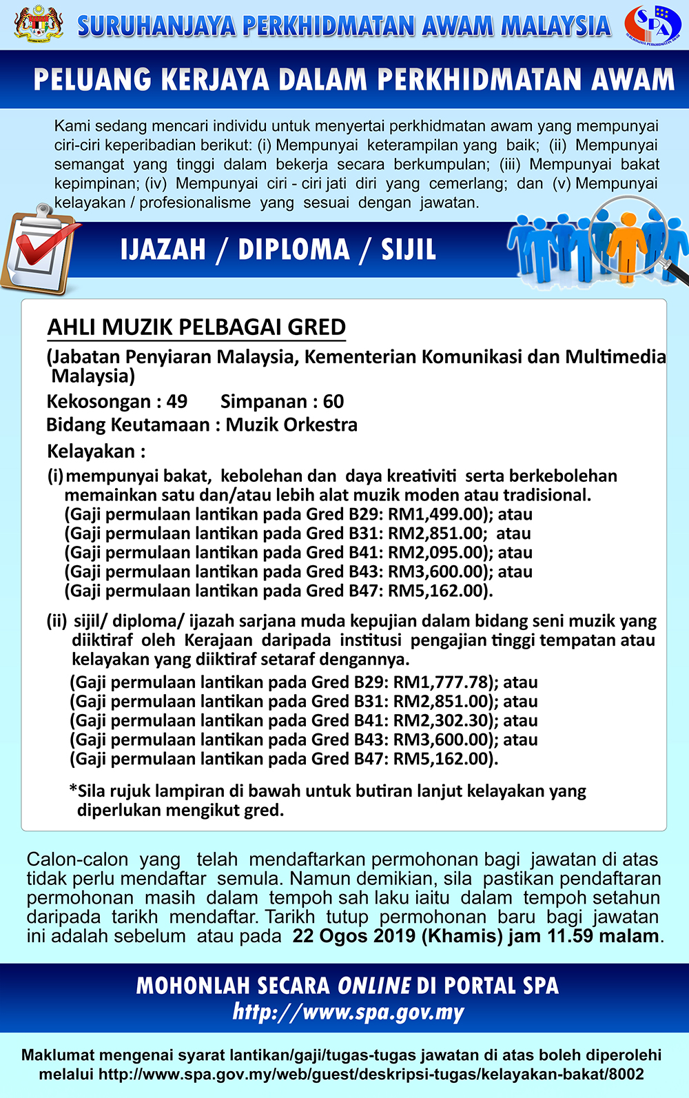 - Tarikh Tutup Permohonan: 22 Ogos 2019
