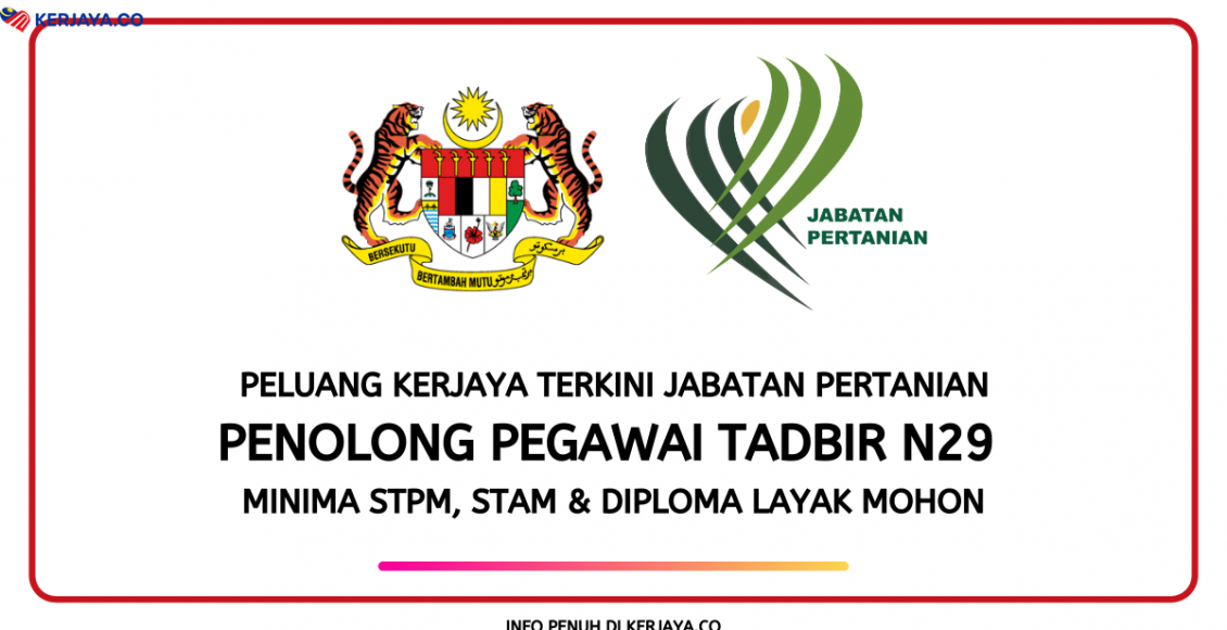 Penolong Pegawai Tadbir N29 di Jabatan Pertanian. Minima STPM, STAM & Diploma Layak Mohon