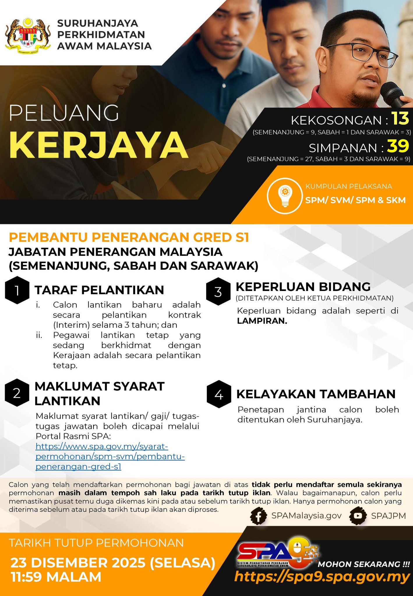 - Tarikh Tutup Permohonan: 23 Disember 2025