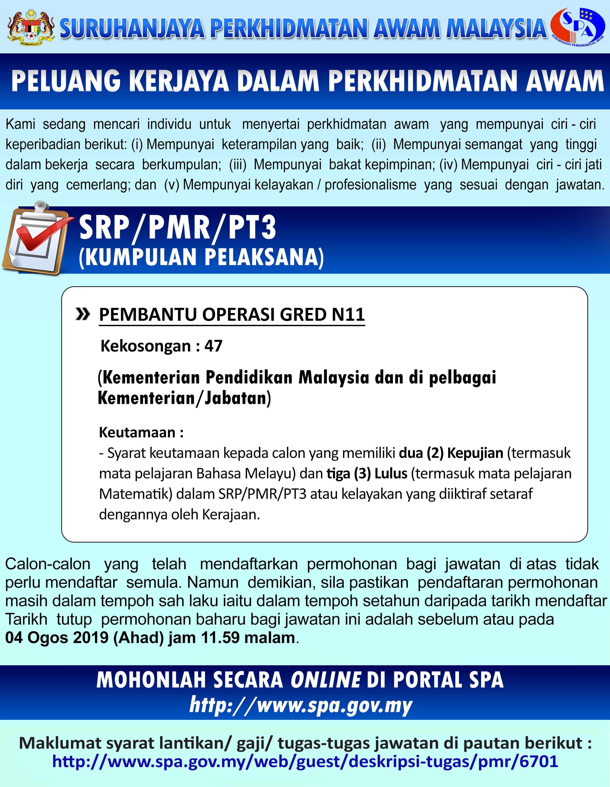 Jawatan Kosong Pembantu Operasi N11 Kementerian Pendidikan Malaysia dan Di Pelbagai Kementerian & Jabatan