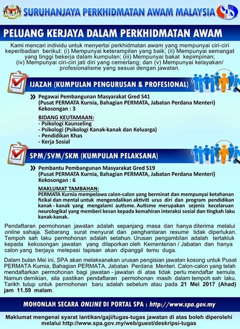 - Tarikh Tutup Permohonan: 21 Mei 2017
