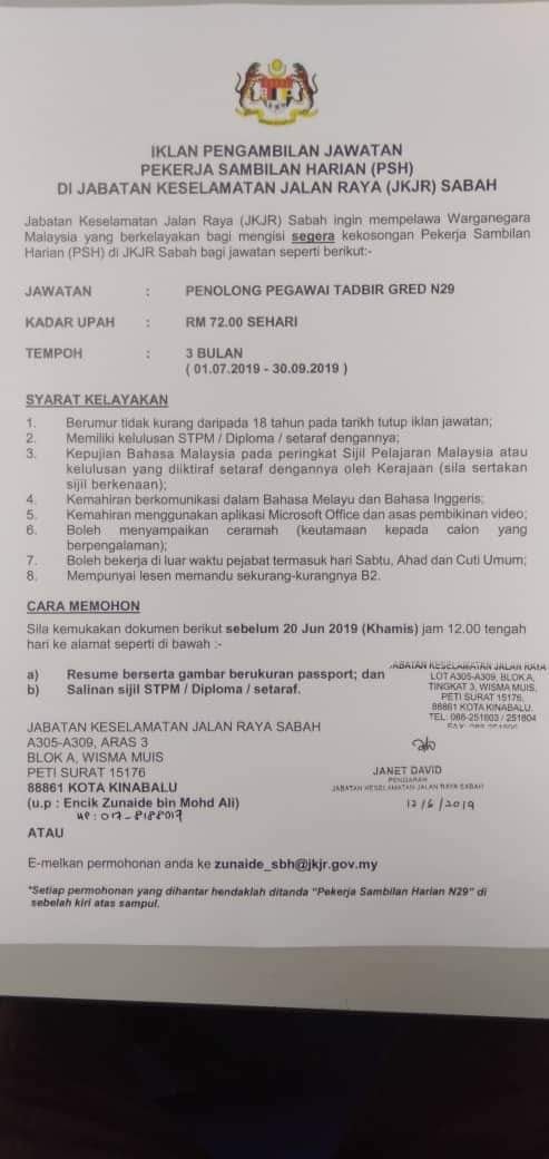 - Tarikh Tutup Permohonan: 20 Jun 2019