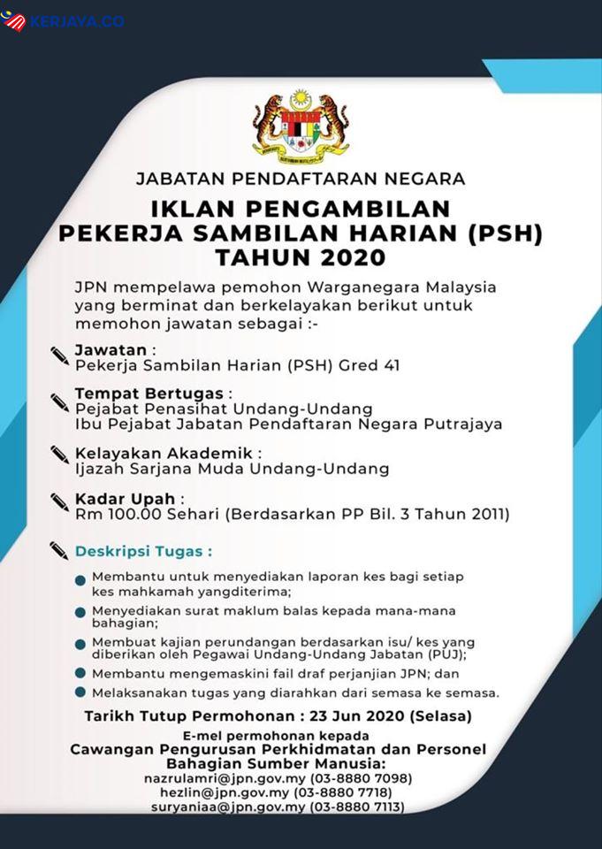 Permohonan Jawatan Kosong Jabatan Pendaftaran Negara (JPN).