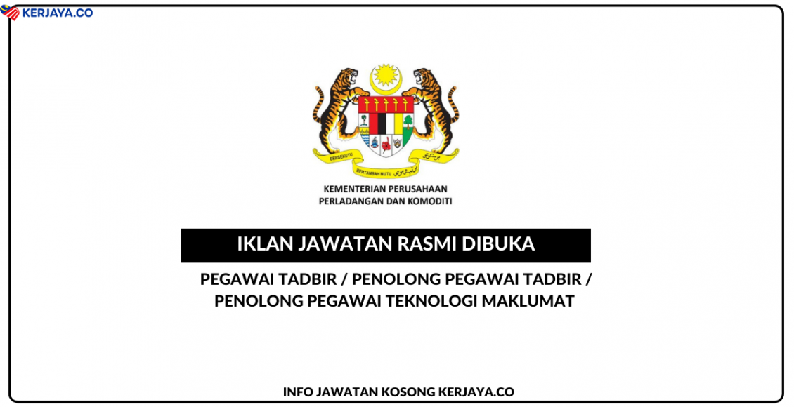Kementerian Perusahaan Perladangan & Komoditi (MPIC) ~ Pegawai Tadbir, Penolong Pegawai Tadbir & Pelbagai Jawatan