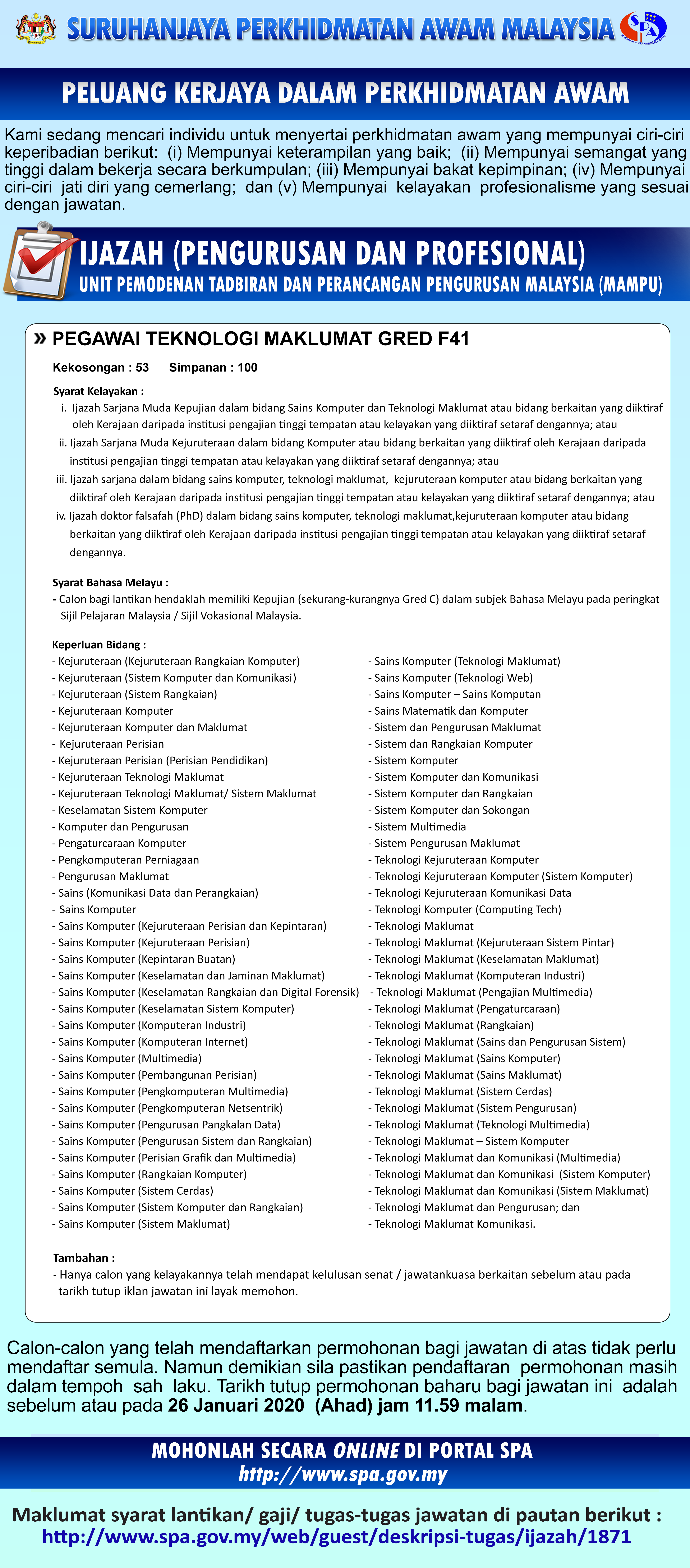 - Tarikh Tutup Permohonan: 26 Januari 2020
