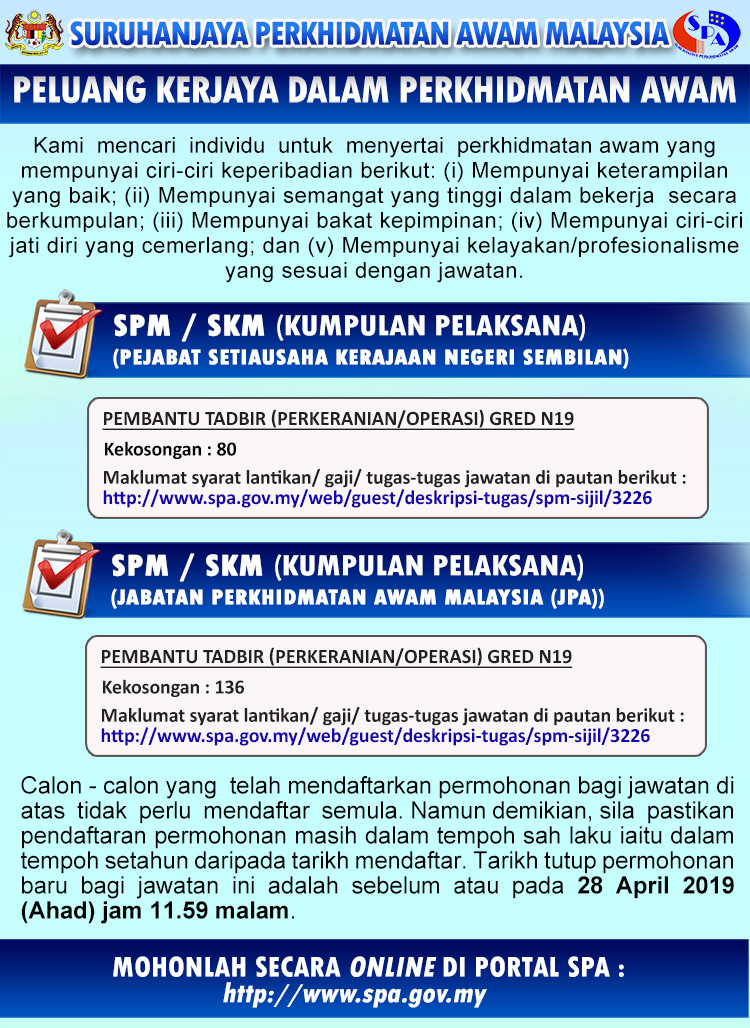 - Tarikh Tutup Permohonan: 28 April 2019