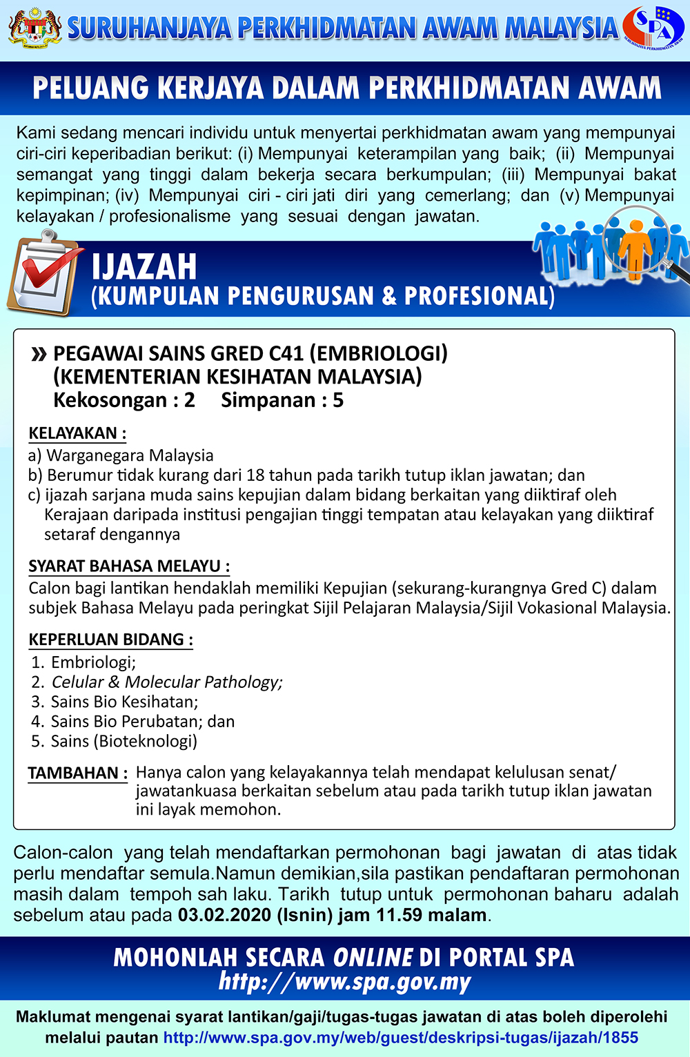 - Tarikh Tutup Permohonan: 03 Februari 2020